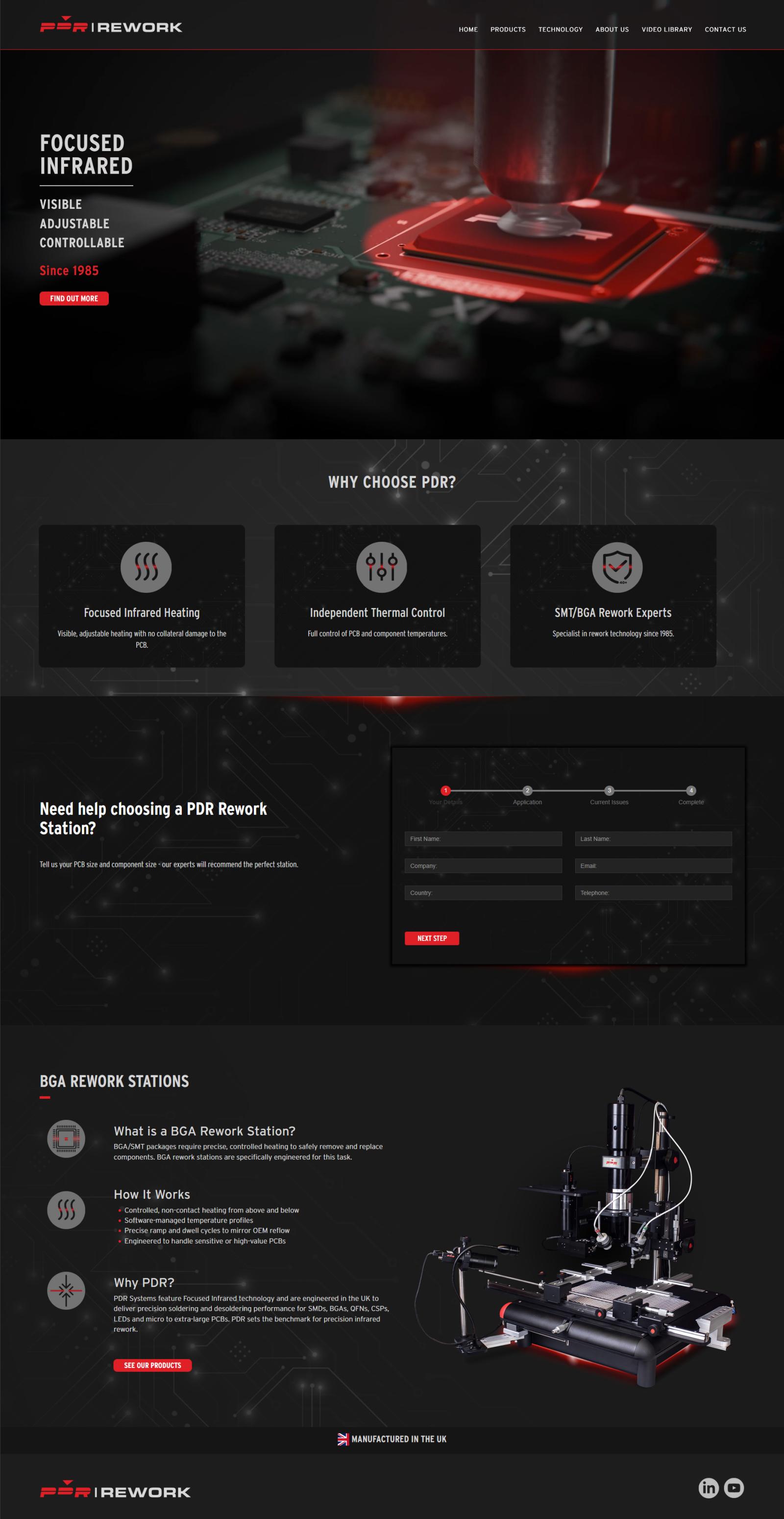 - Product Demonstration Video – Video content is used extensively across the site to clearly demonstrate how the IR Rework Stations operate, helping users quickly understand complex processes.